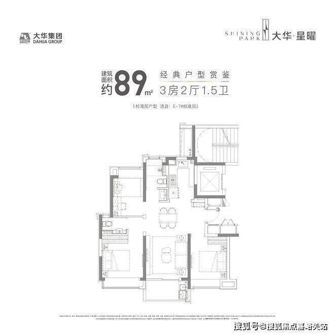建面约89㎡3房2厅1.5卫 ▼上海大华星曜官方售楼处电话:400-8787-740√√√【已认证】
