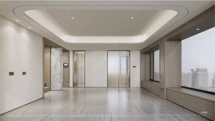中叠户型四开间朝南,步入玄关即被IMAX级全景落地窗震撼,自然光线与园林景观透过超大玻璃幕墙倾泻而入。
