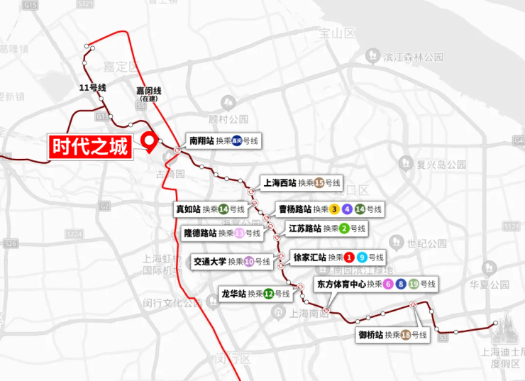 时代之城售楼处电话:400-1010-064✅✅临近的11号线轨交能级更远超其他。作为目前世界最长的轨交线路(数据来源:上海交通官方公众号),11号线从上海嘉定区安亭站和嘉定北站开始,途经普陀区、长宁区、徐汇区,终点止于浦东新区迪士尼站。