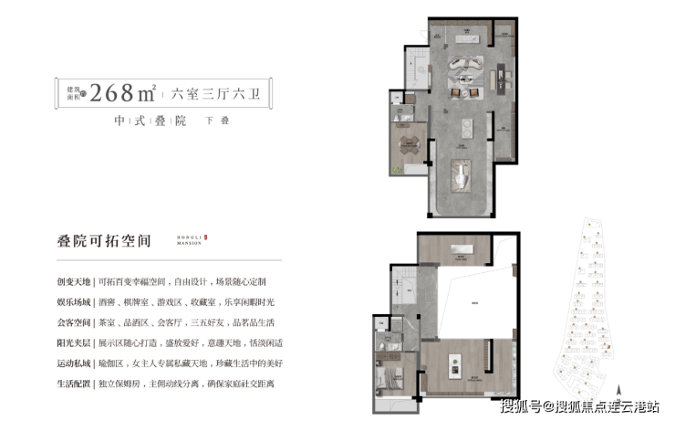 户型特色:下叠赠送65-300㎡庭院及地下室,上叠设14-30㎡露台,部分户型南北通透
