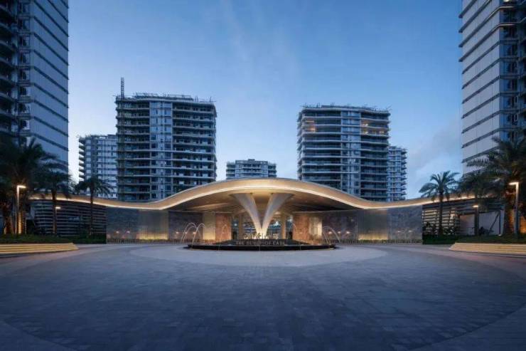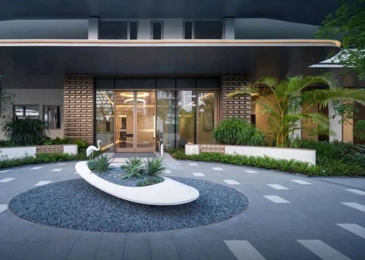漫步间可见度假艺术大堂、无风雨落客平台,热带风情迎宾树阵;海浪层叠的环岛水景以及妟舞主题艺术雕塑,缔造“归家即度假”的人居体验。