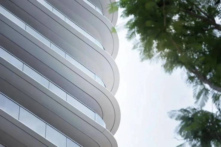 整体建筑设计使用世界豪宅所追求的“超流体”经典设计,加之全景玻璃幕墙,淬炼流银的奢华立面,勾勒如海浪般的建筑轮廓,又仿若飞鸟即将振臂高飞,营造出一种静谧又不失奢华的艺术感。