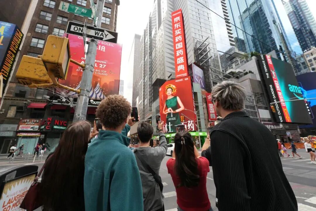 2025年9月3日,片仔癀携手京东健康“国药盛典”登陆纽约时代广场。图片来源:片仔癀微信公众号