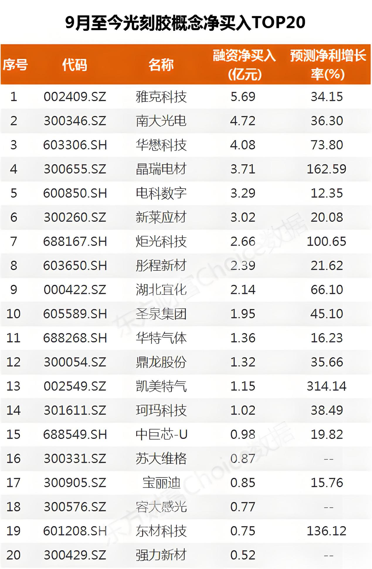 重要突破!杠杆资金抢筹光刻胶概念股(表格)