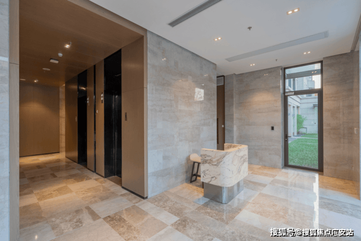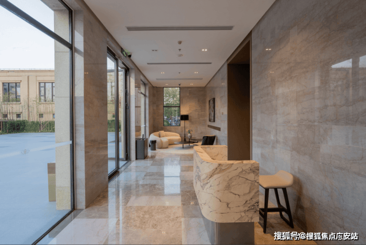 古北99的建筑立面在采用 天然黄金麻石材肌理搭配灵动的线条,柔化了石材的坚硬质地,端庄典雅的同时更显时尚。