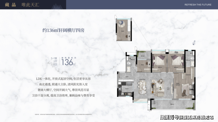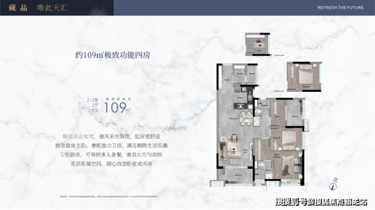 105㎡四房两厅:总价520-550万元,南北对流双阳台,次卧可改造成儿童房或书房;