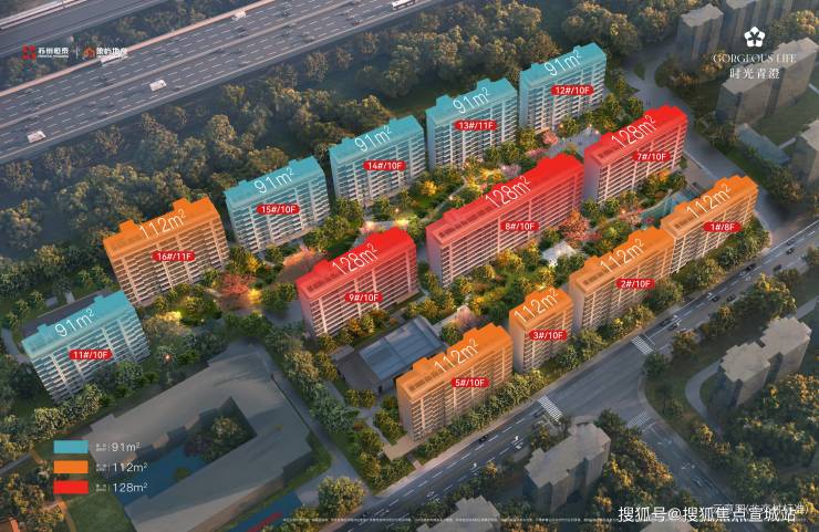 户型面积:建面91㎡(3居)、112㎡(4居)、128㎡(4居)