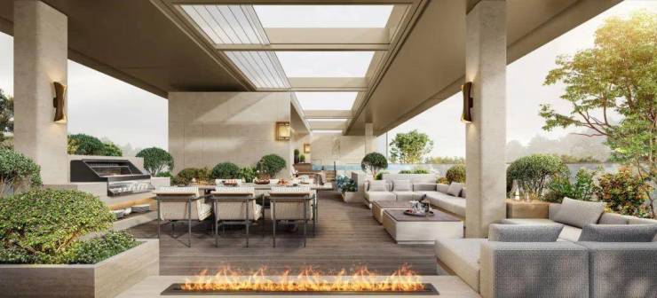 屋顶花园采用 “室内化” 精装标准,地面铺装与室内材质呼应,配备水电接口与智能浇灌系统,可改造成空中会客厅或星空影院。更预留泳池基建接口,业主可按需打造 “天际泳池”,让屋顶空间兼具实用功能与社交展示属性。