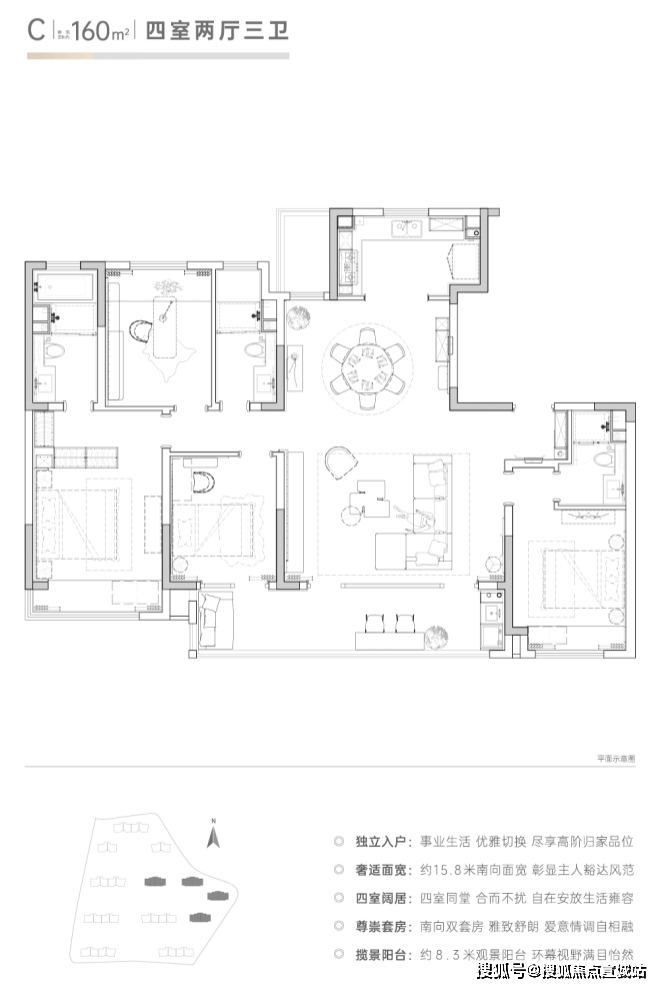 主力户型:建面约 122㎡三居、132㎡四居、160㎡四居。