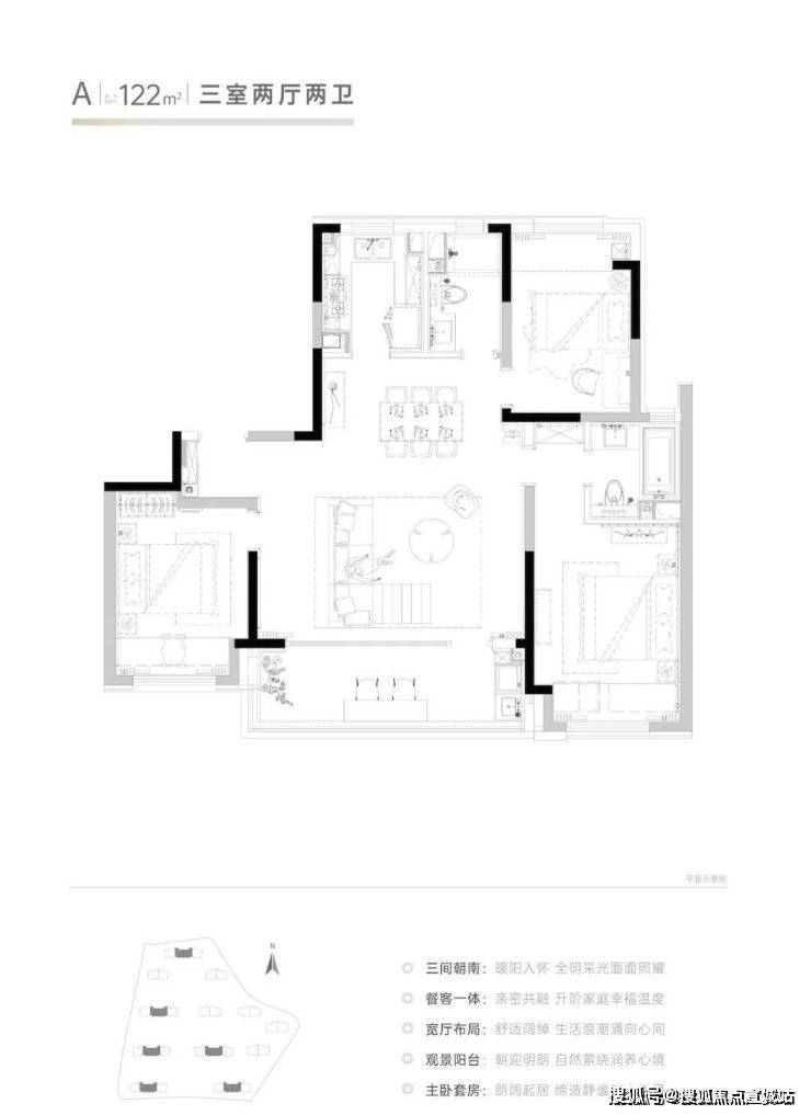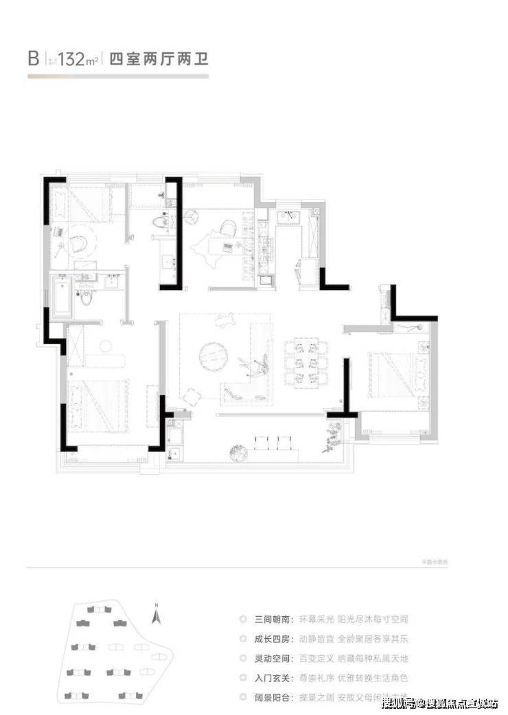 主力户型:建面约 122㎡三居、132㎡四居、160㎡四居。