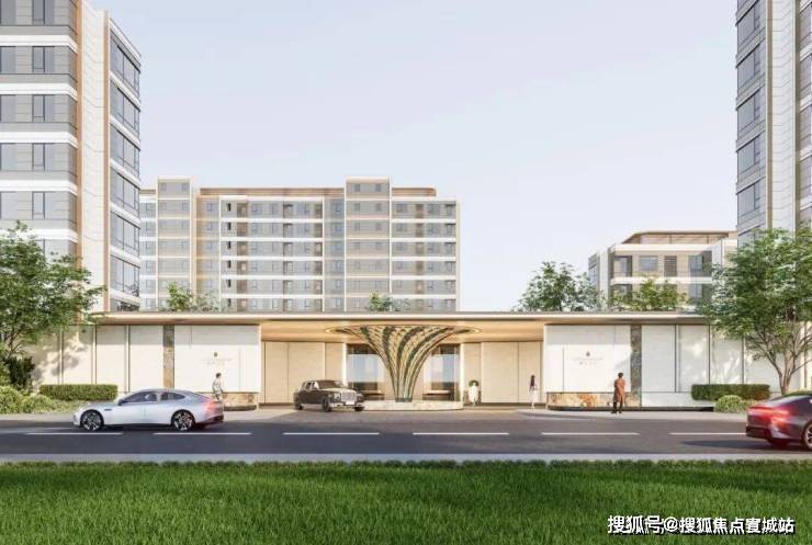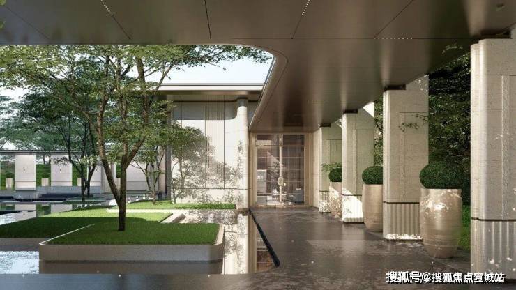 比如,立面上借鉴一线城市豪宅标准,采用最前沿的铝板玻璃幕墙设计,最大程度保证室内的采光,宽敞且通透;大门是星级酒店同款的环岛式,中间的金属雕塑融入艺术巧思,不乏华丽调性,让人一眼即惊艳!