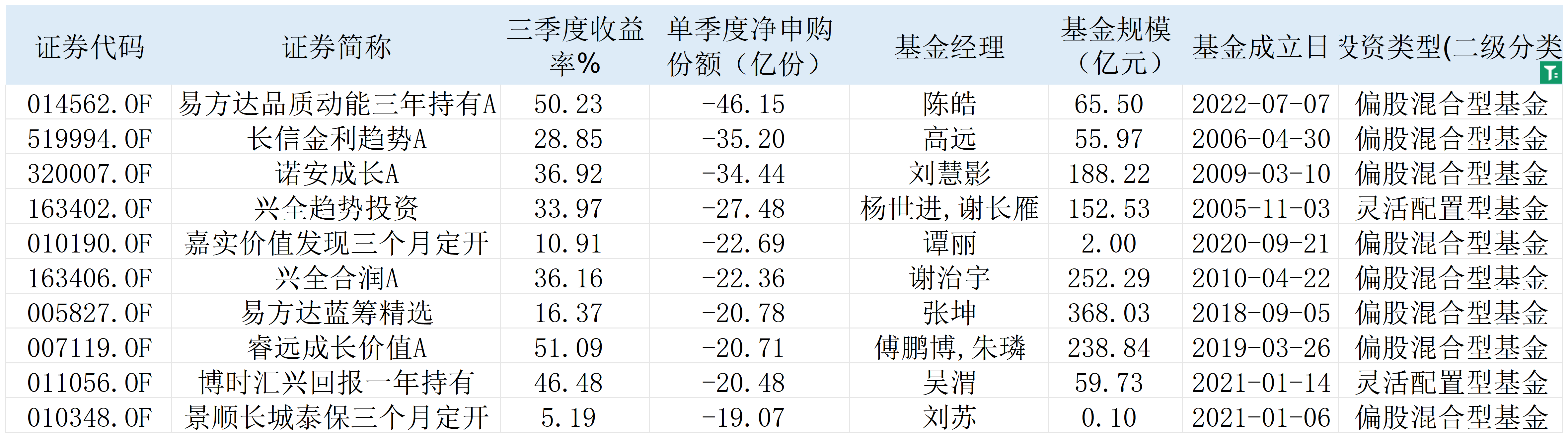 通过三季度基金的申购和赎回数据,可以直观感受到机构和投资者更青睐哪些基金。