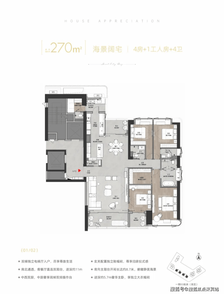 183㎡4房2厅3卫,253-270㎡4房2厅4卫+工人房。