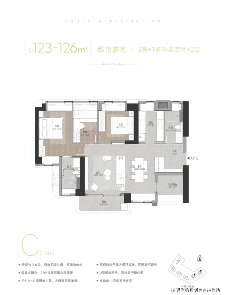约6.7m双开间观景超大阳台可开可合中西餐厨+岛台设计主卧设大拐角飘窗,户型通透,客餐厅7.9m进深全优卧室产品,尊享舒适进深多功能+1空间灵活多变。