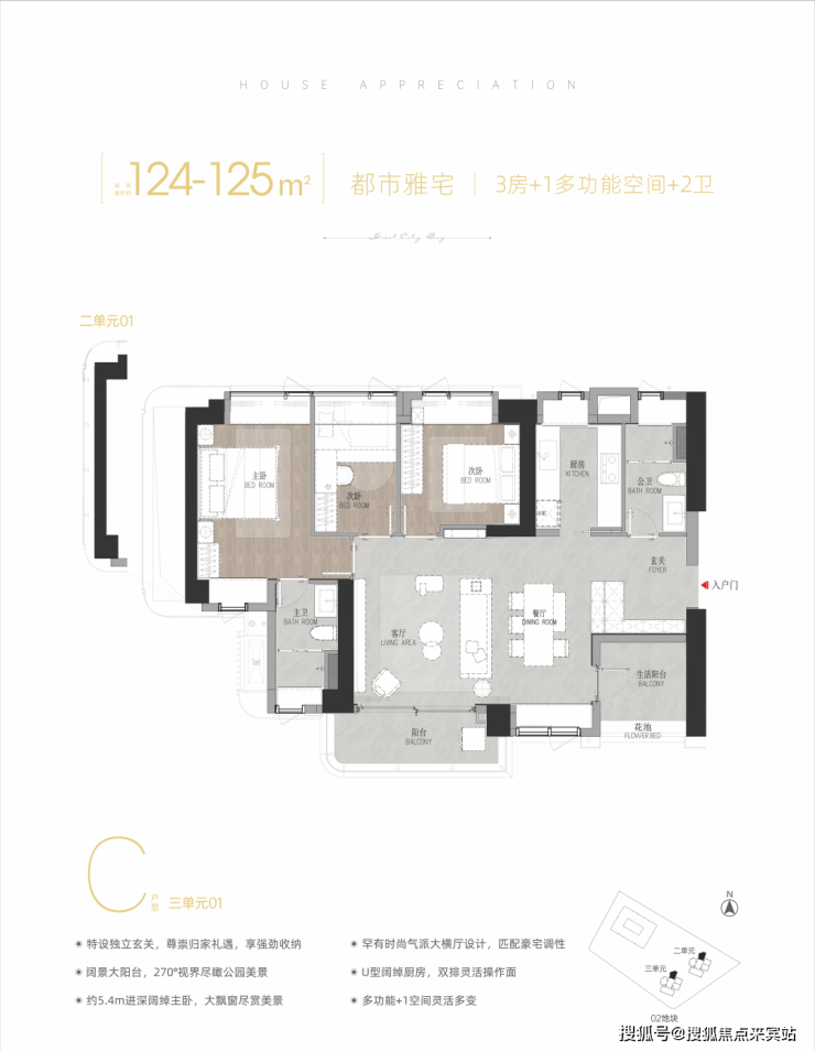 122-124㎡3+1房2厅2卫,有竖厅、横厅和双龙抱珠户型,跟之前03地块户型完全一致。