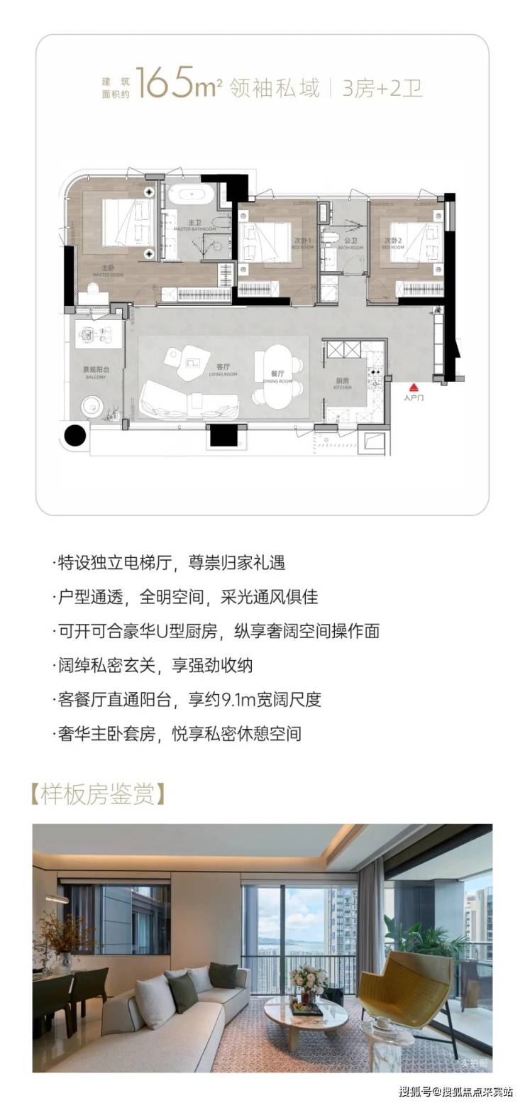 约6.7m双开间观景超大阳台可开可合中西餐厨+岛台设计主卧设大拐角飘窗,户型通透,客餐厅7.9m进深全优卧室产品,尊享舒适进深多功能+1空间灵活多变。