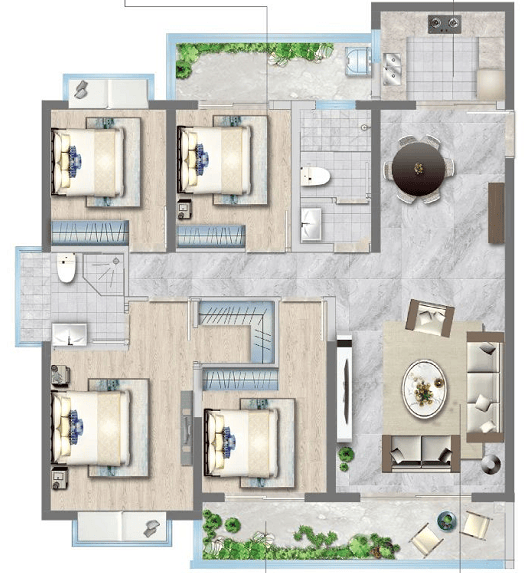 G1户型:建面约136㎡(四室两厅两卫)