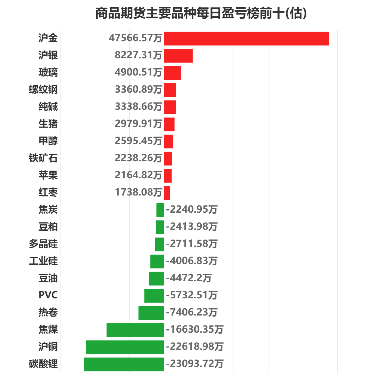 今日商品期货上榜机构席位中沪金盈利第一,为47566.57万元。