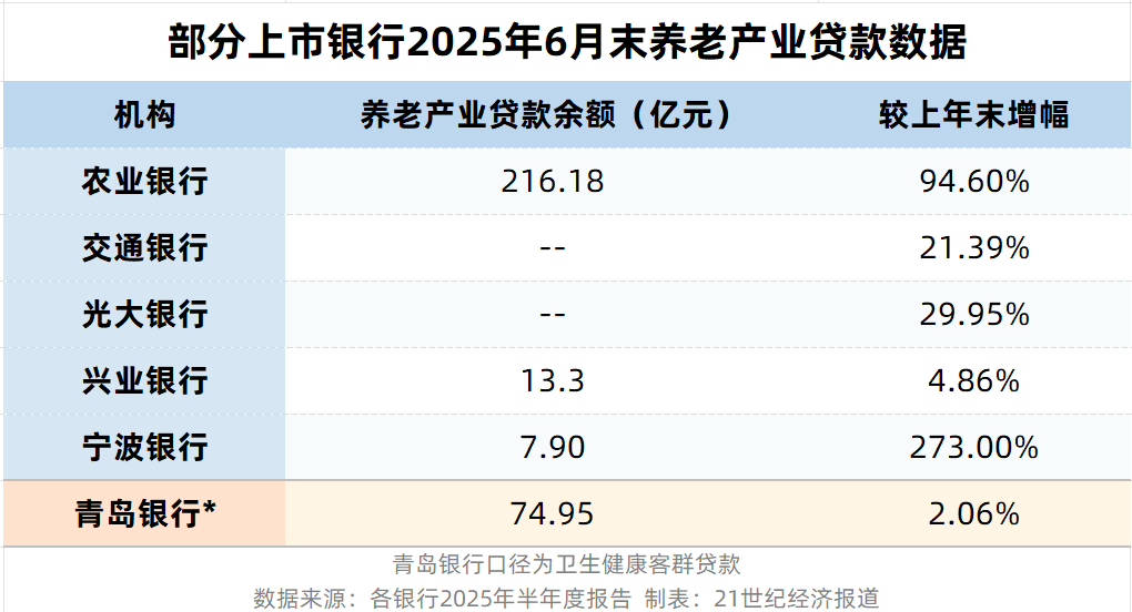 具体来看,截至6月末,农业银行养老产业贷款余额达216亿元,较上年末增长94.6%,近乎翻倍的增长速度彰显了其发力养老产业的决心;光大银行同类贷款增长29.95%;宁波银行养老贷款余额较年初增长273%,显示出区域性银行在这一领域的积极布局。