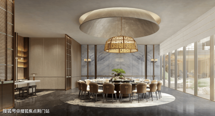 建筑设计上,深度溯读良渚文化,以“良渚的玉”为设计立意,将国际审美与在地文化完美交融,从良渚遗址的高台形制,到东方重檐,打造金质玉石考究立面,既饱含与属地浑然天成的和谐之感,又不失当代艺术的精致简约。
