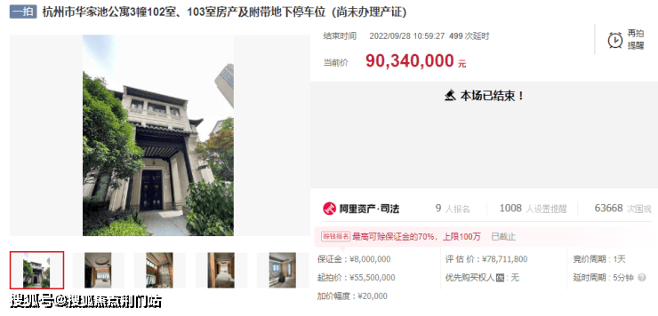 上个月,一套评估价7871万的华家池华墅,经过整整599次竞拍,创下了9034万的年度法拍纪录,比评估价高出近1200万,折合单价高达14万/㎡!要知道,这可是一套“一房双证”的排屋,不仅要占两张房票,还是毛坯房。