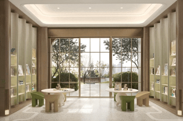 并且,这个架空层的空间相当丰富,包括有儿童主题乐园、会客厅、健身房、图书馆、老年活动空间、四点半学堂等。