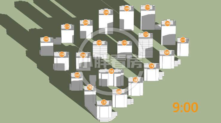 夏至(9-15时)在售楼栋日照时间和动图