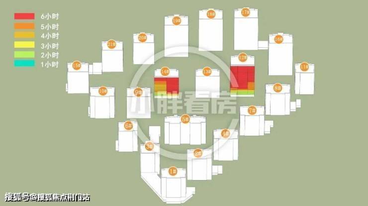 和萃揽悦园的分析结果是这样:计算已考虑周边所有建筑的影响,结果表明由于周边规划尚未公示,暂且不建,楼栋仅受地块内部影响。(说明:本文日照数据基于公示规划图纸文件,使用专业制作工具完成,仅供参考)