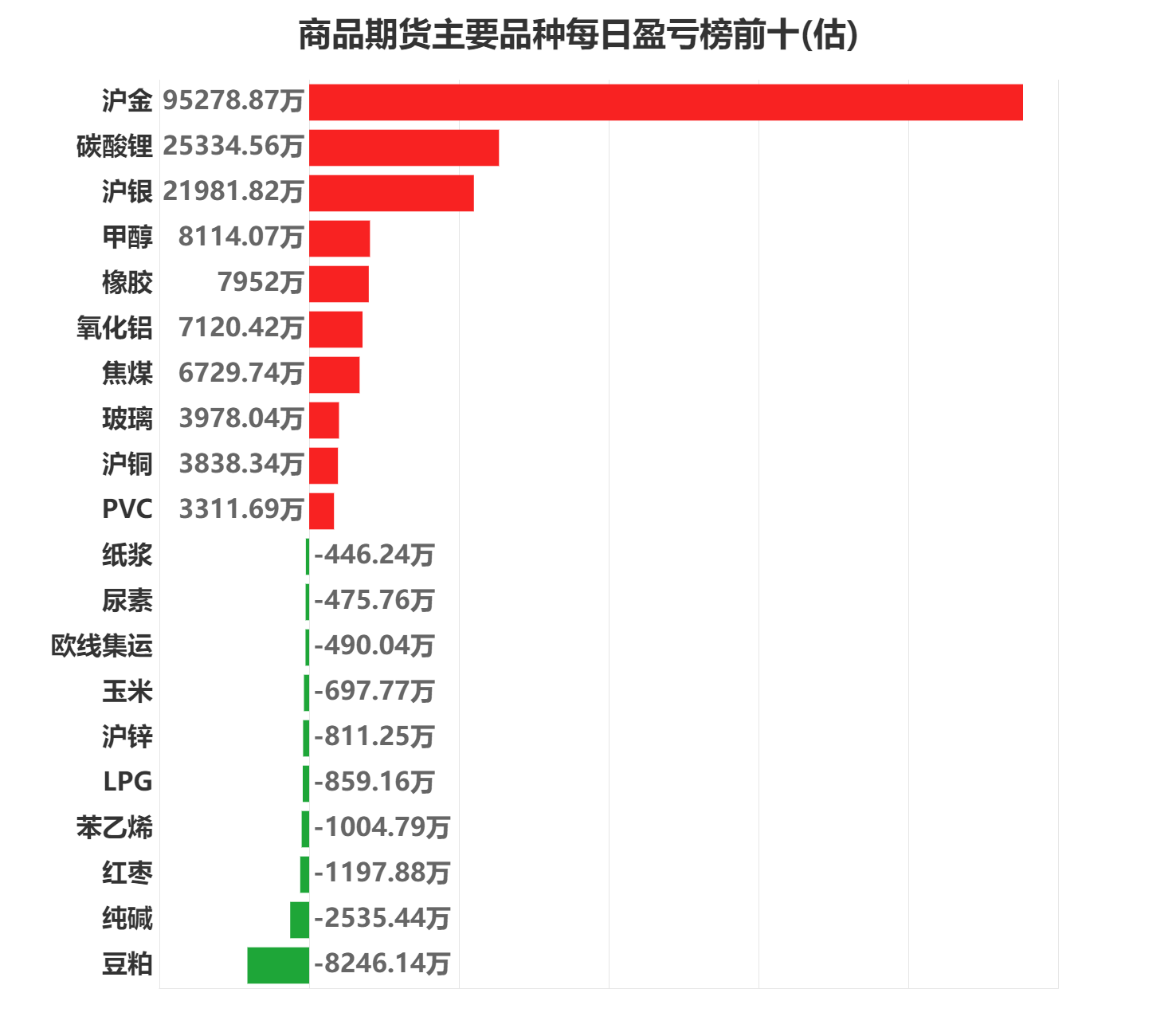 今日商品期货上榜机构席位中沪金盈利第一,为95278.87万元。