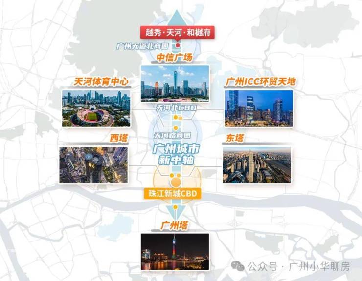 ◎从天河北商圈到珠江新城,广州中轴线历经20年沉淀已发展成为一条超万亿的城市资本线,涵盖广州最顶级的配套资源、汇聚广州最靓丽的地标名片;