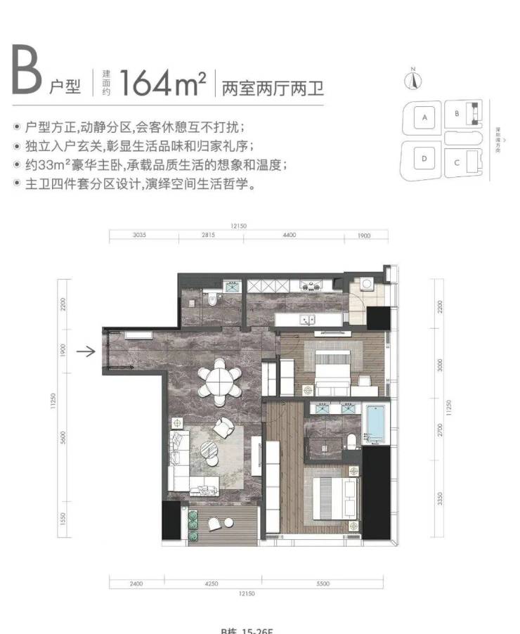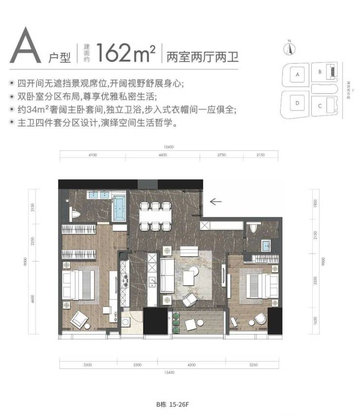稀缺产品:推出约160-580㎡可通燃气舒居商务公寓,户户带阳台,5梯4户/5梯2户奢华配置。