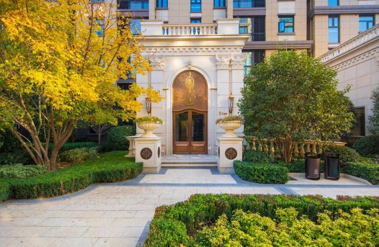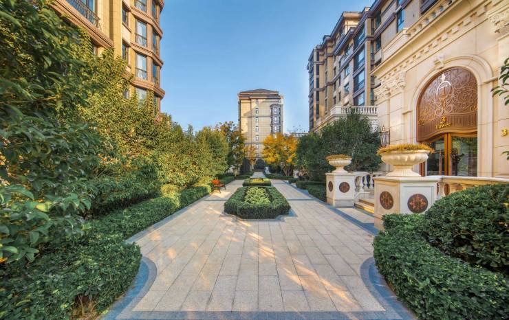 郑东华府·TIVOLI枫丹白露景观组团、中轴权杖景观规制,法式园景、亭台小品、阳光大草坪,结合阵列红豆杉、花坛相得益彰。