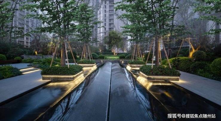 中央度假水庭会所,延续江湾海浪印记,复刻大江震撼场景,以书页水景艺塑致敬天一阁,展现宁波「书藏古今」的底蕴;并点缀精致热带植物,营造度假感。