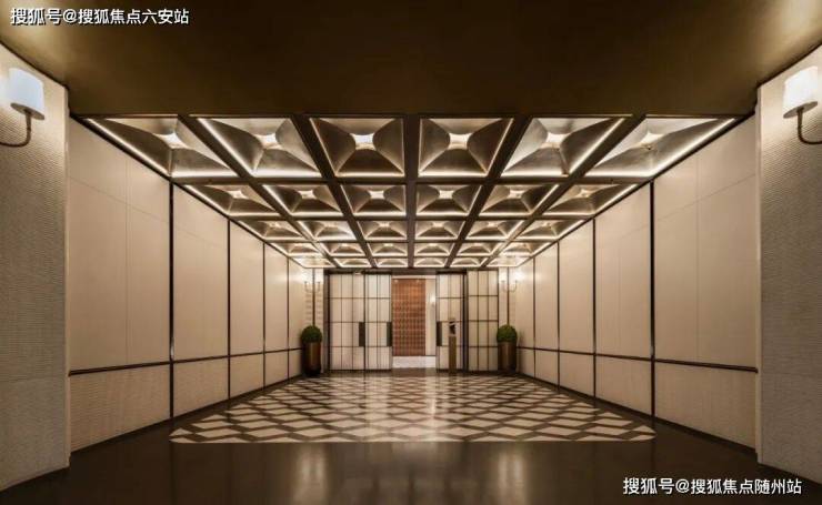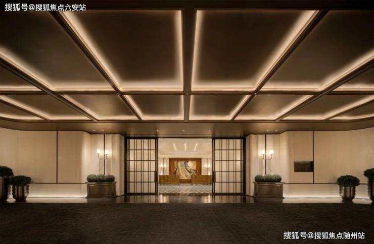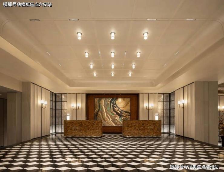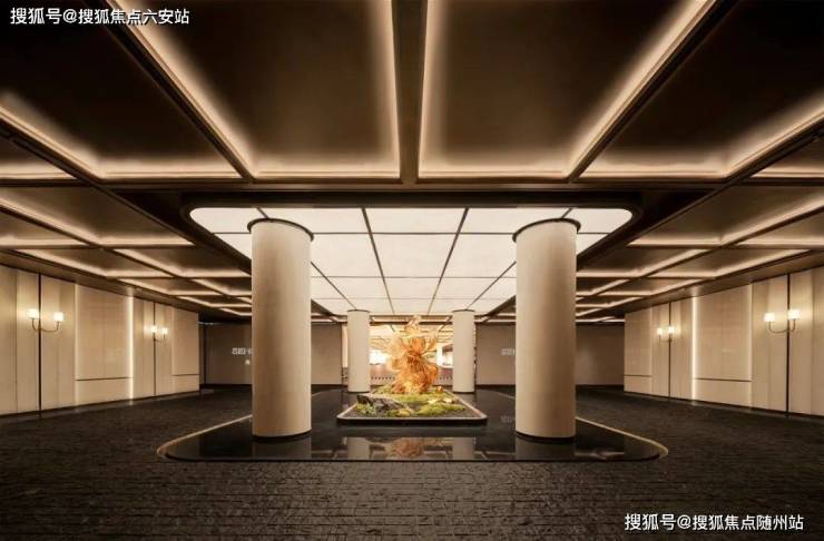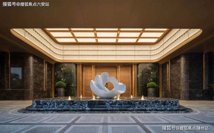 步入门庭,云石吊顶之下,借鉴中国古代建筑中的“藻井”做法,由522片皇家白玉石材拼接而成,凝聚光华,辉映时空。华光之下,中心水池承托起艺术雕塑,莹润皎洁,宛若珍宝。立面则采用铂金钻奢石,搭配墨绿荷塘月色奢石、安哥拉黑奢石花钵、以及手工锻造的巨幅铜门,流淌出一抹温润质感。