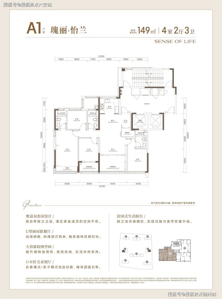 【A 瑰丽·怡兰 世纪城祗此建面约149方双套房】