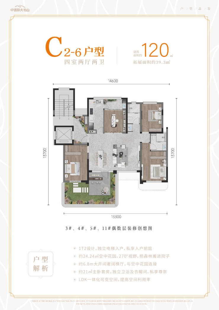 【梯户比】:1T2 1T3 2T4