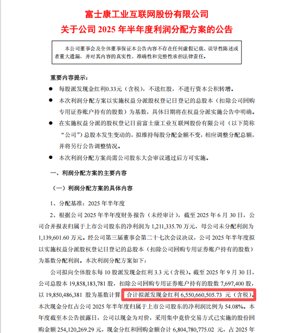 以工业富联为例,其在10月21日发布的2025年中期利润分配方案,系其首次发布中期利润分配方案。