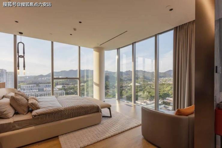 幕墙结构配以极窄边框设计,物理存在感被弱化至最低,真正实现“框景为画”的视觉效果。无论晨光微熹、云海翻腾,抑或夕阳鎏金、星河璀璨,居住者皆可在室内自由空间中尽揽天地壮美。这种无遮挡、无边界的视觉体验,重新定义了“景观房”的标准。