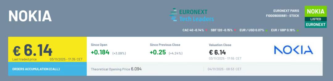 诺基亚表示,公司董事会已决定提交申请,将其股票(ISIN:FI0009000681)从巴黎泛欧证券交易所(Euronext Paris)摘牌。