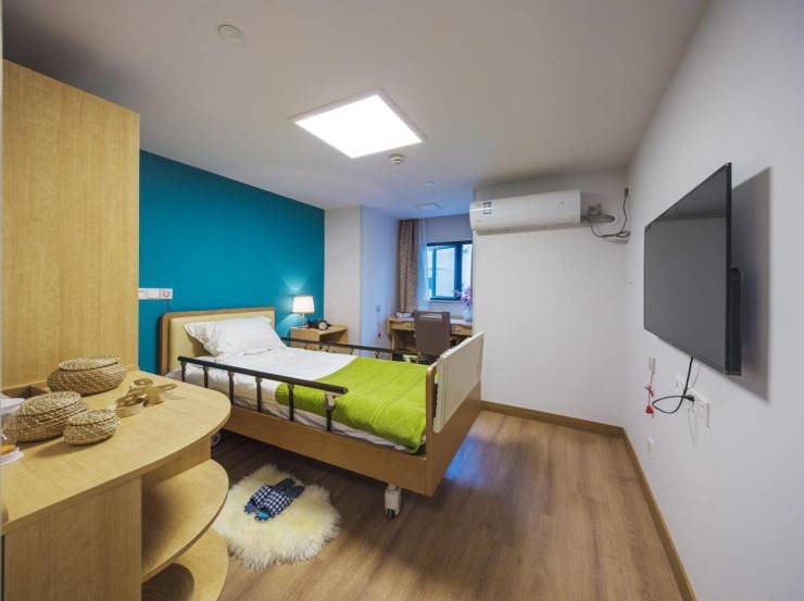 设施特色:绿色生态园式主题养老护理院,设有棋牌室、阅览室、康复室、阳光房;房间配备电视机、沙发、桌椅、冰箱、衣柜、鞋柜、独立卫生间、洗澡间、空调等,每个床边有紧急按钮。