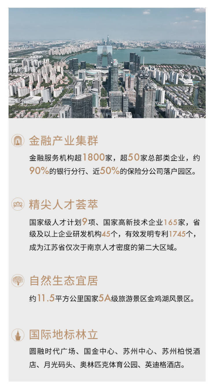 在苏州,金鸡湖CBD作为对话国际的重量级版图,这里勾勒着国际化璀璨的天际,流淌着传奇的血脉,承载着塔尖生活向往。