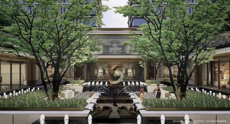 汲取东方藏宝盒的灵感,围绕“经典新生,价值永续”的核心理念,以尊贵礼仪串联空间序列,打造多重式院落,丰富空间体验。