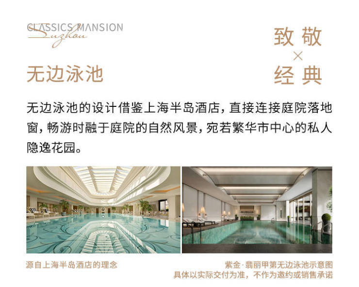 约2600㎡规制,苏州最大、功能最全的对标高奢酒店级会所,涵盖私宴厅、恒温泳池、健身中心、行政酒廊、红酒雪茄吧等,以尊崇服务和标准,定制一个圈子的品味。