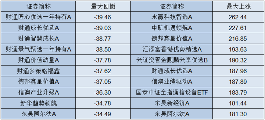 值得注意的是,今年前10个月,最大回撤、最大上涨、超额收益和区间回报这4个维度的前十基金中,最大回撤与最大上涨同时上榜的基金有3只,最大上涨与回报前十同时上榜的有2只,最大上涨与超额收益同时上榜的有2只。