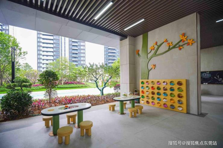 还有“细节”够贴心:小区是人车分流,老人带娃在楼下玩,不用怕车来车往;车位比1:1.6,就算一家两辆车,也不用抢车位;每栋楼门口都有罗汉松,架空层也没有荒废,设有儿童玩乐区、休闲会客厅、运动健身设施,下雨也能在楼下活动。
