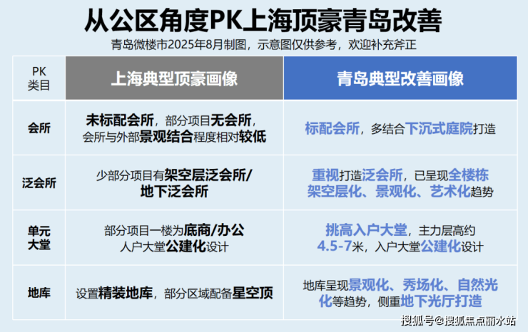 第二,上海少部分顶豪设计架空层/地下泛会所,青岛改善重视泛会所,且呈现景观化、艺术化、全楼栋架空层化趋势。