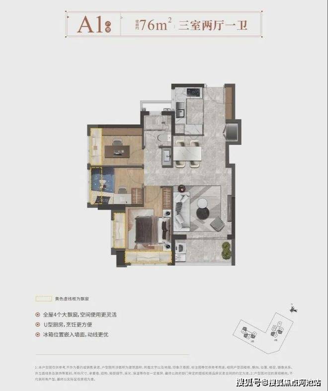 【户型】76㎡3房2厅1卫、90㎡3房2厅2卫