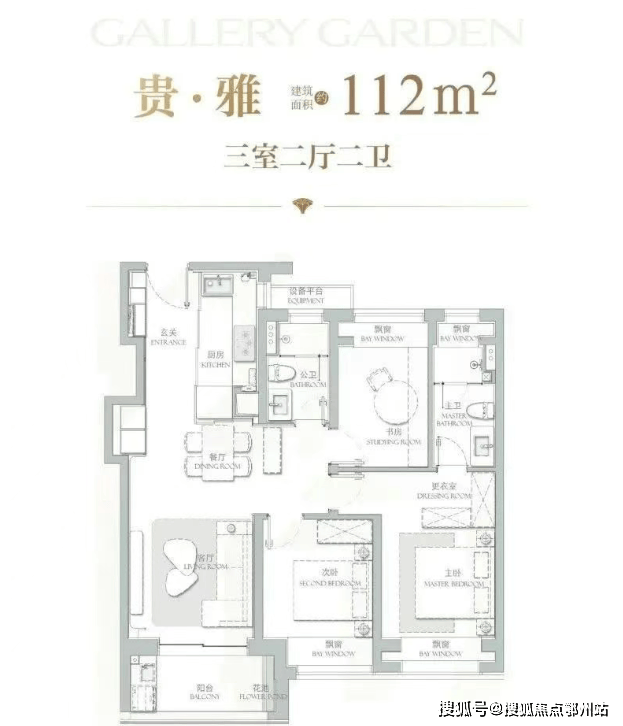 112㎡三房:三卧朝南,“去走廊化”设计,U型厨房
