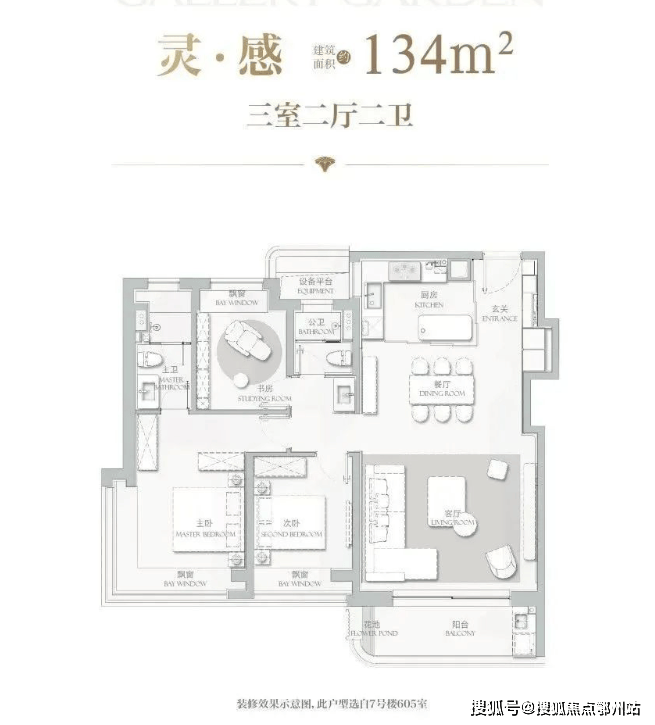 134㎡三房:动静分离,客厅面宽超4.7米+270°采光阳台