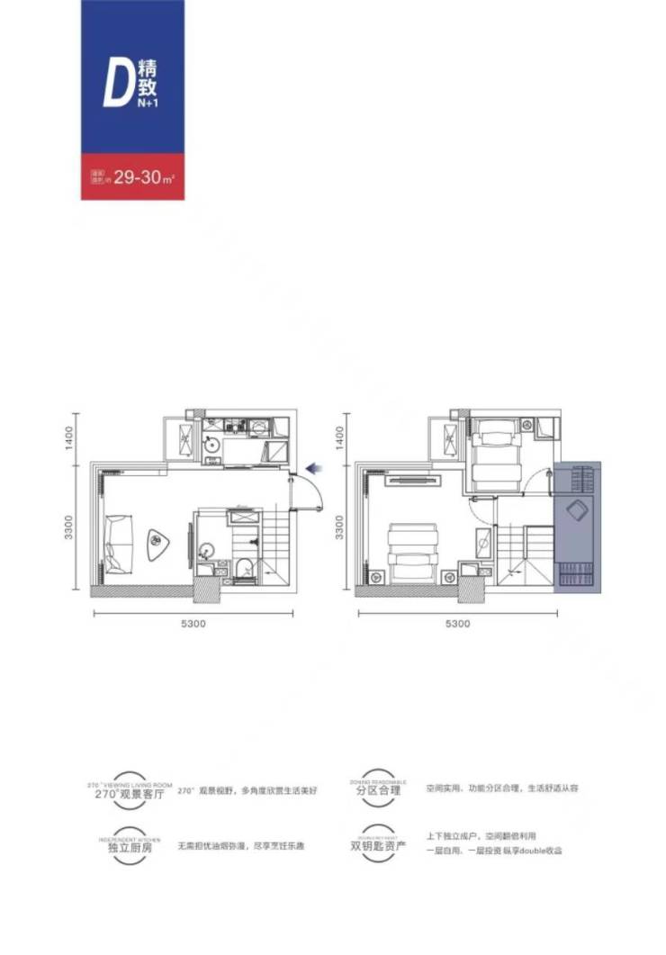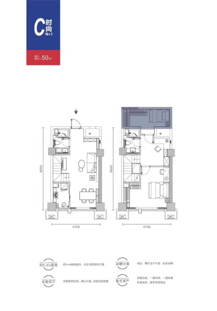 楼层分布:首层为沿街商业、2-7层为平层精装公寓、8-21层为LOFT公寓